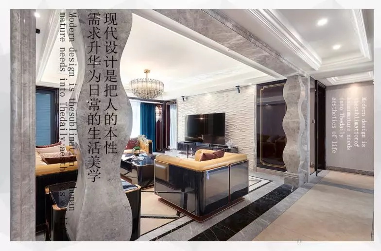 該案給人的第一感覺就是大氣豪爽,這也是設(shè)計(jì)師在跟業(yè)主聊天后從業(yè)主身上感受到的氣質(zhì),并將之體現(xiàn)在了家裝設(shè)計(jì)中。黃色的沙發(fā)給人活潑好客的感覺,大量大理石和鏡面的運(yùn)用增強(qiáng)了空間立體感。