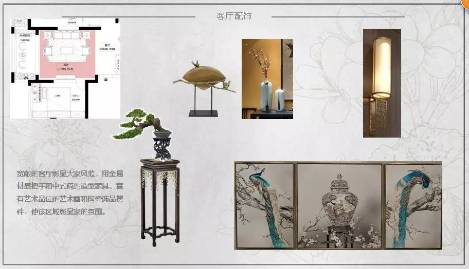 本案為新中式風(fēng)格,寬敞的客廳彰顯大家風(fēng)范,用金屬材質(zhì)把手和中式簡(jiǎn)約造型家具、富有藝術(shù)品位的藝術(shù)畫和陶瓷飾品擺件點(diǎn)綴空間,極具古典氣息,營造中式特有的韻味和文化氣息。